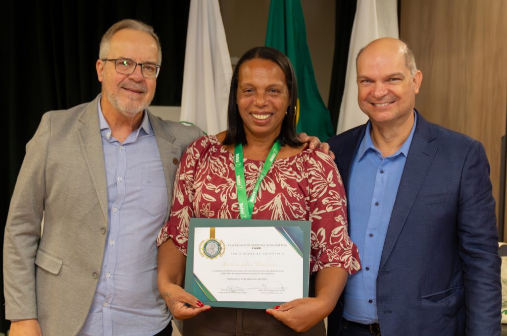 Os alunos egressos também tiveram espaço de fala. O Dr. José Dayrell de Lima Andrade, da Turma 25 (ano 2000), representou os ex-alunos em um discurso de gratidão e reconhecimento. Já o Dr. Mário Tadeu Caporal, da Turma Pioneira, prestou homenagem ao colega Dr. José Pacheco Leite e a todos os egressos falecidos, em um momento de profunda emoção.